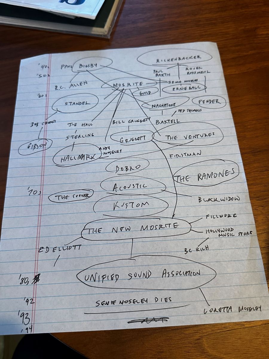 I’m here in the woods in chilly Maine, farther north in the state than I’ve ever been, spending time with my pal Adam Tober. Adam is one of the most knowledgeable guys in the world when it comes to Mosrite guitars. He is definitely THE resource of knowledge when it comes to the guitars that Semie Moseley made in the 1970s and 1980s, an era I’m not as familiar with. Adam has a killer collection of some of the rarest and most interesting guitars from that era. Adam also speaks fluent Japanese, which makes him a guitar sensei, someone I’ll rely on intensely when we go to Japan for the final research trip of the Mosrite book journey.